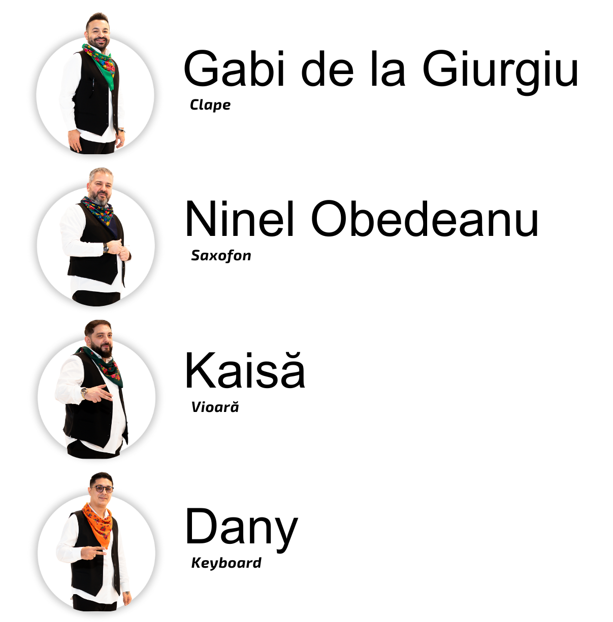 În spatele acestei formule muzicale de excepție se află inițiativa și dedicarea lui Gabi de la Giurgiu pe numele său real: Feraru Marius Gabriel – fondatorul și motorul principal al ansamblului. Organist talentat și profund implicat în fiecare detaliu, Gabi continuă cu mândrie moștenirea unei familii cu șapte generații de lăutari, purtând mai departe tradiția muzicii populare și lăutărești cu pasiune și respect.